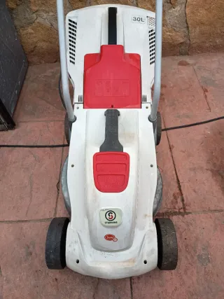 Cortacésped eléctrico Sterwins 320 EP 4. Funciona bien pero para céspedes pequeños, si tienes un césped muy grande se calientan y estos cortacéspedes al ser de plastico se les sale la correa y te toca desmontar y volver a montar (se arregla fácil pero es molesto) - Capacidad de 30L. - Asa plegable para un almacenamiento más cómodo.