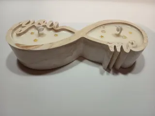 Preciosa vela artesanal con forma de infinito, que representa you & me. Ideal para un regalo especial o para dar un toque romántico a tu hogar. - Elaborada con cera de soja. - Aroma a vainilla. - Decorada con estrellas doradas y perlas. - Diseño único you & me.