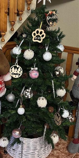 Árbol de Navidad artificial, Medidas 1,50 de alto Conserva la caja original Lleva base blanca de mimbre de decoración