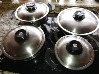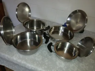 Set de cazuelas de metal, ideales para vitrocerámica. No son aptas para inducción. ( AMC ) - Diseño plateado. - Material acero inoxidable No hago envios