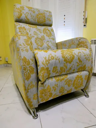 Acogedor sillón relax con un bonito estampado floral. - Tapicería de tela. - Diseño con flores en tonos grises y amarillos.