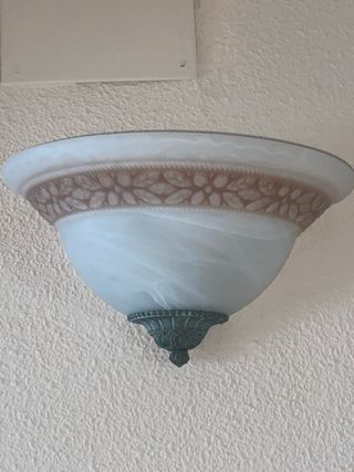 Elegante aplique de pared con un diseño clásico. - Pantalla de cristal con detalles decorativos. - Base y detalles metálicos. TENGO 2: Eur10 cada uno