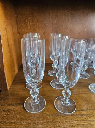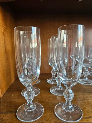 Conjunto de seis elegantes copas de cava del modelo Claudia de Cristal de Bohemia. Perfectas para celebraciones. - Diseño clásico y refinado. - Base y tallo con detalles decorativos. - Ideales para champán y vinos espumosos.