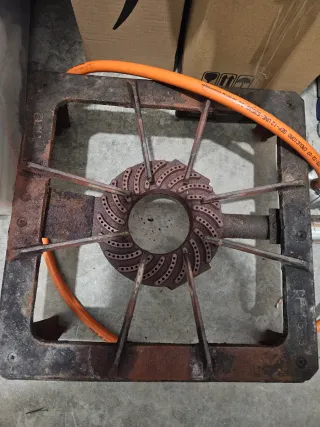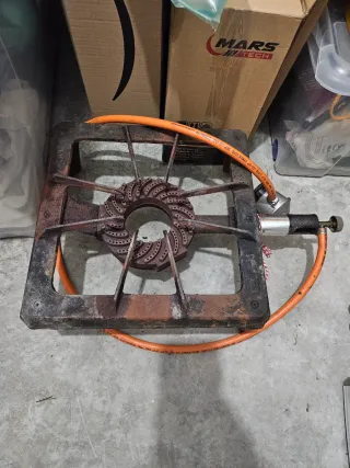 Quemador de gas de hierro fundido, ideal para exteriores. - Fabricado en hierro fundido resistente. - Diseño robusto y duradero.