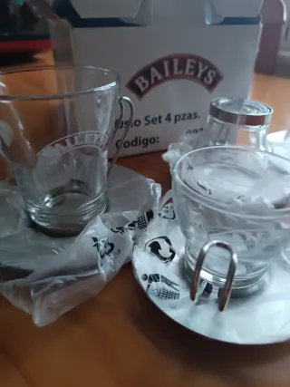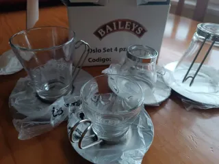 Set 4 Tazas y Platos Baileys Cristal y Metal