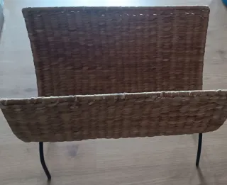 Revistero de mimbre y metal