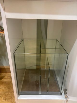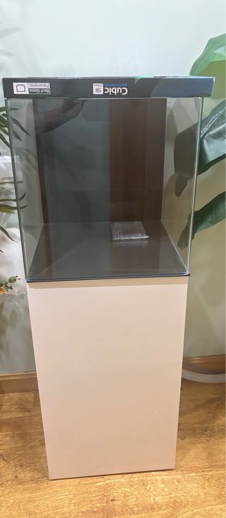 Acuario de cristal de la marca Blau Marino, modelo 45x45. Con sump. Esquinas frontales redondeadas. Cristal optico. Totalmente nuevo. Con mueble. - Diseño panorámico. - Cristal de alta calidad.