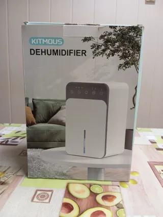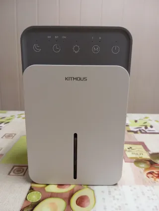 Deshumidificador Kitmous con capacidad de 1.5 litros. Silencioso. Con luzs led de ambiente (colores) No usado nunca. Comprado por duplicado. - Panel de control superior con indicadores. - Indicador de nivel de agua. - Asa integrada para facilitar el transporte.