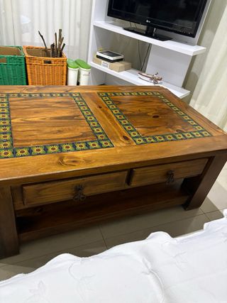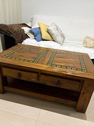 Mesa de centro madera maciza con grabados pintados