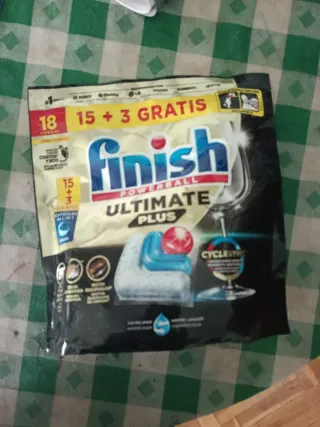 Cápsulas para lavavajillas Finish Powerball Ultimate Plus. - Contiene 18 cápsulas + 3 de regalo. - Fórmula Ultimate Plus. - Apto para ciclos cortos y ECO.