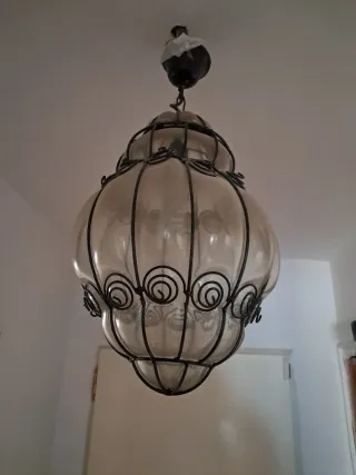 Solo en persona. Urge. Necesita limpieza. Elegante lámpara colgante con un diseño inspirado en el estilo árabe. Su estructura combina metal y cristal para crear un ambiente único. - Diseño de inspiración árabe. - Combinación de metal y cristal.