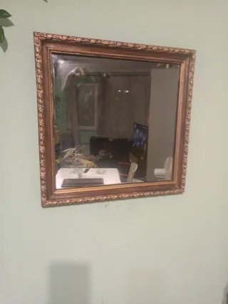 Elegante espejo con un marco detallado. - Marco con diseño tallado. - Acabado en tono dorado.