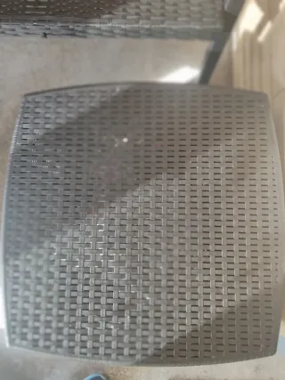 Mesa auxiliar de exterior con un diseño moderno y versátil. - Acabado tejido tipo ratán. - Base y estructura en tonos oscuros.
