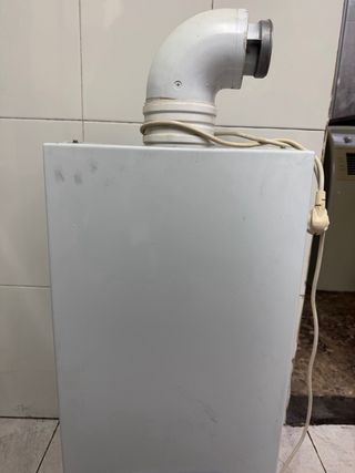 Calentador de agua de la marca Vaillant, modelo turboMAG. - Diseño moderno en color blanco. - Panel frontal con controles y pantalla digital. - Es para gas ciudad.