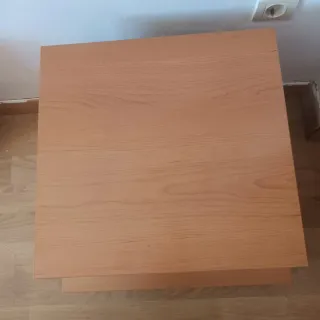 Mesa cuadrada de madera con un acabado en tono marrón. - Medidas: 13 uds. 80x80 cm 50 eur. y 2 uds. 150x80 cm 80 eur. Precio por unidad.