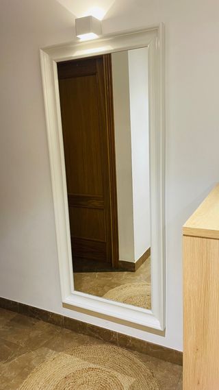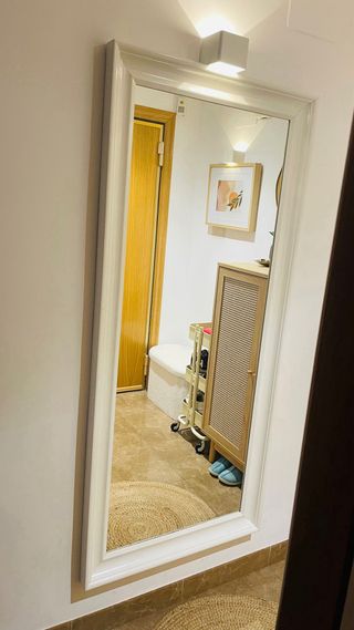Espejo de pared con marco blanco. - Diseño moderno y elegante. - Ideal para cualquier estancia del hogar.