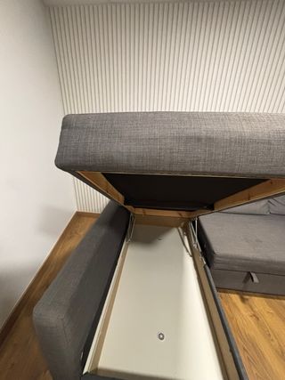Sofá chaise longue de tela en color gris. - Diseño moderno y funcional. - Amplio espacio de almacenamiento bajo el chaise longue.