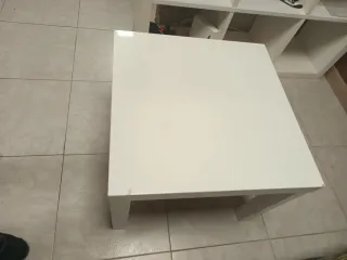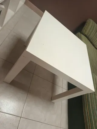Mesa auxiliar de madera en color blanco. Su diseño moderno y minimalista la hace perfecta para cualquier espacio. - Patas robustas para mayor estabilidad. - Superficie lisa y fácil de limpiar.