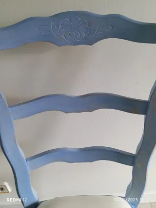 2 Sillas de cuero y metal. Azul y verde. 55 €,uni.