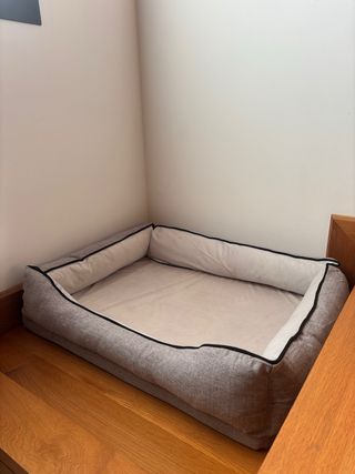 Cama para perro con un diseño moderno y acolchado. - Base suave y confortable. - Bordes elevados para mayor seguridad. - Funda extraíble para facilitar la limpieza.