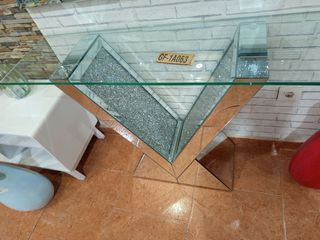 Elegante entradita con un diseño moderno y llamativo. - Base con acabado brillante y detalles de cristal. - Superficie de cristal transparente.