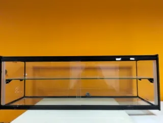 Elegante vitrina con acabados en cristal y metal. - Diseño moderno y minimalista. - Estructura robusta y duradera. - Superficies de cristal transparentes.