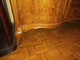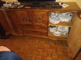 Juego de muebles, vitrina, mesa con sillas y trinchante. El trinchante tiene un cristal cortado a medida de 2 metros.
