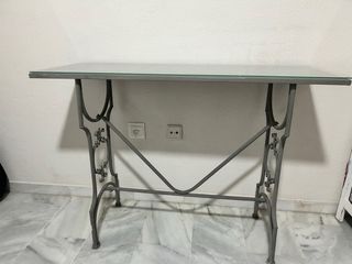 Consola de metal gris con cristal