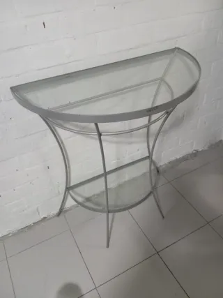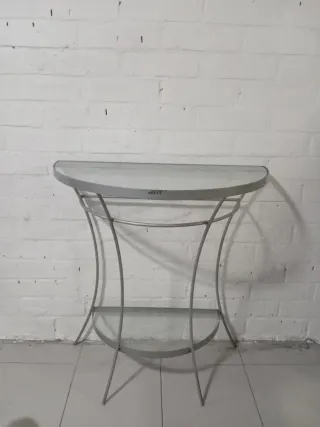Elegante consola con un diseño moderno y minimalista. - Encimera y balda de cristal - Estructura de metal. -Alto 75x70x36 Tiene un poco del metal desgastado .