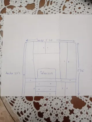 Mueble de salón con vitrina y cajones. - Estructura de madera. - Puertas de cristal en la parte superior. - Cajones en la parte inferior. Modulares total 1,60 de ancho Parte baja 0,60 de alto Vitrina 1,47 de alto