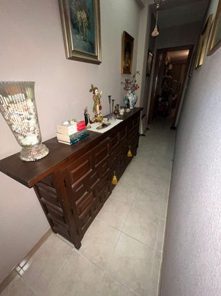Elegante aparador de madera con un gran espejo de madera maciza, fabricado en Lucena. Ancho: 212 cm Profundidad: 46 cm Alto: 190 cm Más muebles de la misma colección en mi perfil.