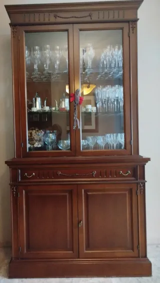 Elegante vitrina de estilo clásico, perfecta para exhibir tus objetos decorativos. - Fabricada en madera maciza. - Acabado en tonos marrones y dorados. • Buena calidad de madera • Cristal completo en puerta frontal • Estantes interiores ideales para vajilla, figuras o libros Diseño clásico atemporal ° Ubicación: Córdoba . Recogida en mano (no incluyo transporte) Precio: 500 euros (negociable dentro de lo razonable) Si quieres más fotos o medidas det y las, + Pregunta lo...