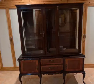 Se vende mueble vitrina de madera, compuesto por dos cuerpos: – Parte inferior con vitrina de cristal y baldas interiores, ideal para exposición – Parte superior abierta, perfecta para colocar objetos, decoración o colección. La parte superior también tiene cristal vitrina que se entrega con el mueble para que se lo monte usted ✔️ Estructura robusta ✔️ Cristales en buen estado ✔️ Estilo clásico / vintage ✔️ Ideal como vitrina, mueble expositor, librería baja o para negocio (tienda, despacho, colección) Estado: usado, con marcas normales del paso del tiempo, pero sólido y funcional (ver fotos). 📍 Mueble grande, recogida en mano.