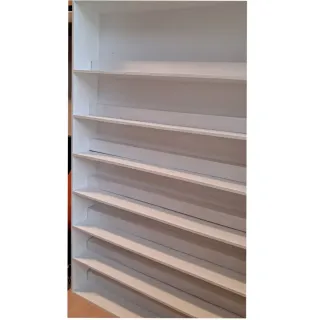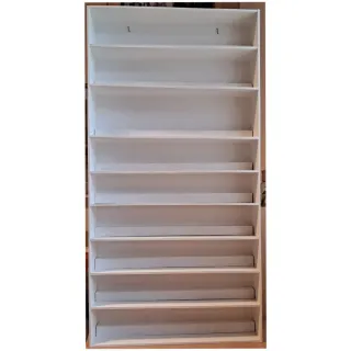 Vitrina expositora. - Múltiples estantes para exhibir objetos: FUNKOS Figuras de Huevos Kinder Miniaturas - Acabado en color blanco. - Hecha a mano con madera de marquetería. - Añadidos palos de madera (extraibles) para conseguir una doble altura en el mismo estante. Medidas: Ancho 40 cm Altura 80 cm Fondo 7,5 cm (por fuera) Fondo 7 cm (por dentro, dejando el grosor del panel trasero sin contar) Espacio entre baldas: 1) 8,3 cm 2) 9,3 cm 3) 11,3 cm 4) 7,5 cm 5) 7,5 cm 6) 7,5 cm 7) 7,4 cm 8) 7,5 cm 9) 8 cm Realizo envíos 📦 Entrego en mano 🤝🏻