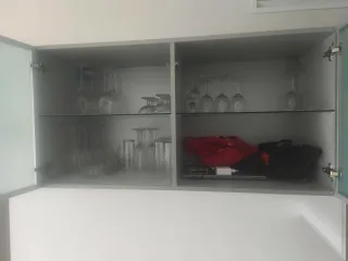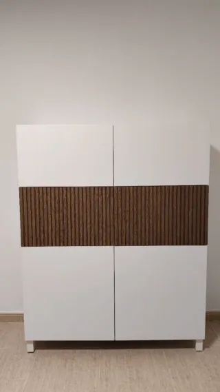 Mueble alto IKEA BESTÅ con puertas de cristal y baldas interiores. Perfecto como vitrina para copas, aparador auxiliar o mueble de apoyo en salón o comedor. Muy buen estado, bien cuidado y con diseño elegante. Se vende de forma independiente. Se vende por cambio de mobiliario. 🚚 Desmontaje y transporte a cargo del comprador.