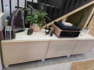 Aparador de la serie BESTÅ de Ikea, con un acabado en madera natural. - Diseño de dos puertas. - Patas de apoyo.
