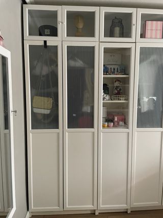Vitrina de la serie Billy de IKEA. Ideal para almacenar y exhibir objetos. - Diseño moderno y funcional. - Acabado en blanco. Se vende solo una vitrina doble (en la foto se ve una individual y dos dobles)