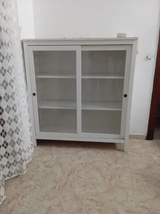 Vitrina de cristal de Ikea con estructura blanca. - Puertas de cristal. - Estantes de cristal. - Base y parte superior blancas. 2 vitrinas en buen estado cada una por 40€ hay una tercera que le falta un cristal lateral por 20€
