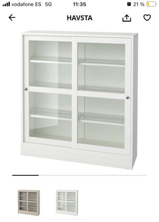Vitrina de la serie HAVSTA de Ikea. Ideal para exponer objetos o almacenar libros. - Puertas correderas de cristal. - Estantes de cristal. - Estructura de madera. Disponibles 2 unidades.