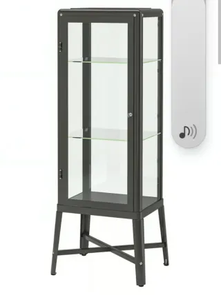 Vitrina de IKEA modelo BLÅLIDEN en color negro. - Estructura de metal. - Estantes de cristal. - Puerta con tirador. Cualquier duda o si necesitas fotos adicionales, pregunta sin compromiso.