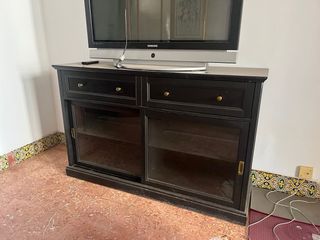 Mueble de televisión de IKEA con un diseño moderno y funcional. - Combina acabados en madera y blanco. - Amplio espacio de almacenamiento con cajones y compartimentos. - Ideal para organizar tu salón. *Posibilidad de venta conjunta con vitrina por 365