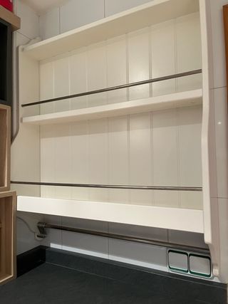 Alacena de pared con un diseño elegante y funcional. - Estructura principal en color blanco. - Barras de sujeción en acabado plateado.