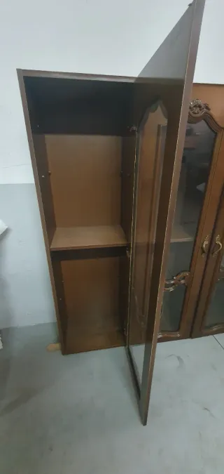 Mueble de madera con vitrina