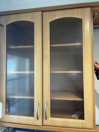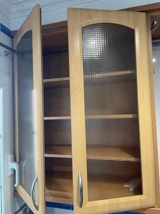 Mueble alto cocina vitrina madera y cristal