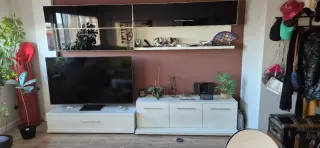 Set de muebles de salón: Vitrina, mesa, cómoda, tv