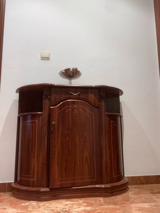 Mueble clásico compuesto por mural de espejos y aparador con pequeño armario y cajón. Mueble de calidad. Ha estado en un piso cerrado durante años. Pequeñas marcas casi inapreciables, por el uso