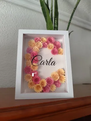 ¿Buscas un regalo único y especial? Vendo cuadros decorativos tipo Shadow Box personalizados ✨ Detalles del producto: Personalización completa: Dime el nombre que quieras y lo diseño para ti. Artesanía: Flores hechas a mano una a una con cartulina de alta calidad. Diseño: Elegante composición en forma de inicial con el nombre en vinilo sobre el cristal/fondo. Marco: Marco tipo vitrina en color blanco (con profundidad), listo para colgar o apoyar en estantería. #cuadropersonalizado #hechoamano #artesania #regalooriginal #shadowbox #decoracioninfantil #cuadroflores #detallespersonalizados #manualidades #regalounico