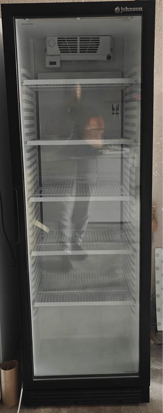 Vitrina de bar Johnson, ideal para mantener tus bebidas frías y a la vista. Su diseño combina cristal y plástico para una presentación elegante. - Puerta de cristal transparente. - Estructura de color negro. - Iluminación interior. - Capacidad de 380 - Alcanza los -4 grados Este es un armario expositor de bebidas de la marca Johnson. Diseñado para la conservación y presentación de productos frescos y bebidas. Cuenta con iluminación interna para una mejor visibilidad de los productos. Las 5 rejillas son ajustables en altura. Incluye cerradura con llaves y un sistema de refrigeración ventilada. Se encuentra en Baza- Granada