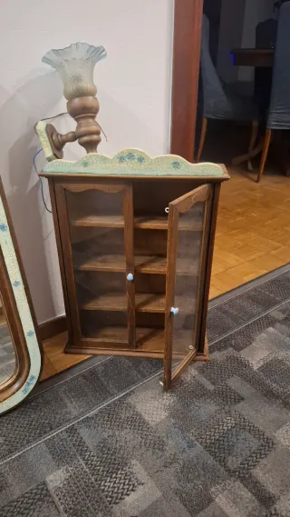 Espejo de 80x55, vitrina de 55x55, estante de 45x32 , cuadro de 30x26 , y un foco
