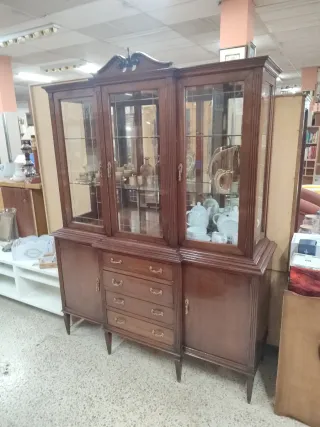 Vitrina antigua de los años 80 en buen estado. Solo le falta un cajón